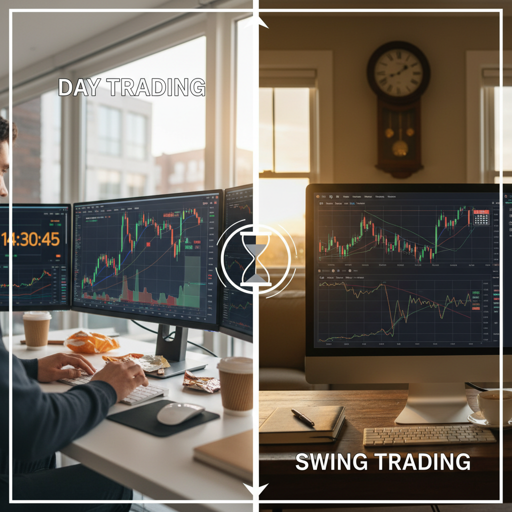 Day trading and swing trading are different ways to capture price moves — one focuses on intraday action, the other rides trends over days to weeks. Both seek profit from short-term price changes, but they use distinct timeframes, setups, and trader behaviors.